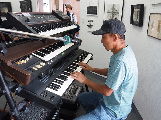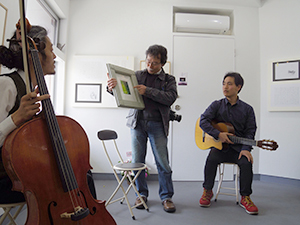 イベントにて即興演奏のために絵の説明をする五島三子男先生