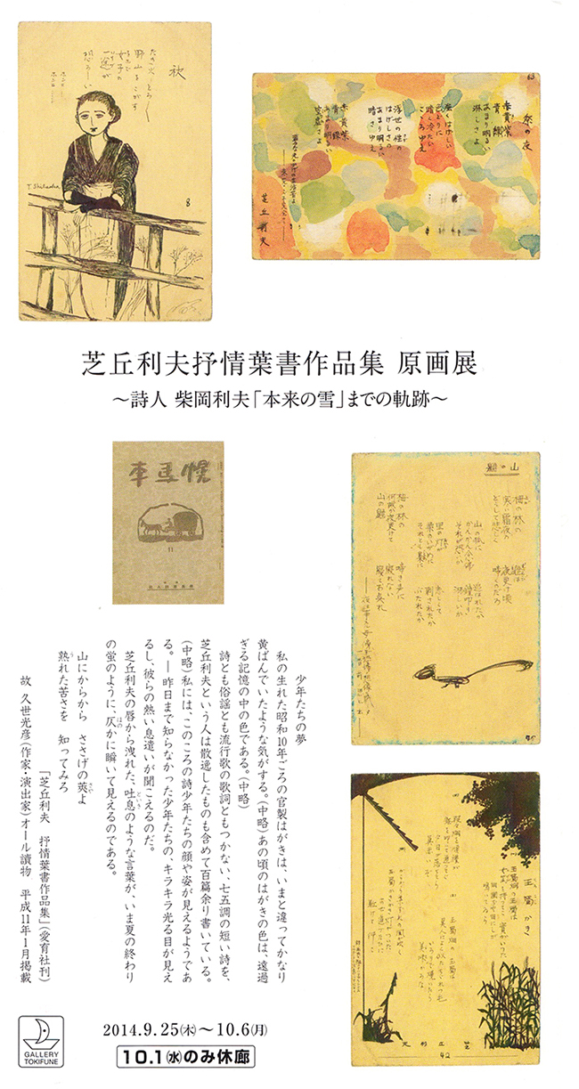 2014.9.25(木)~10.6(月) 芝丘利夫抒情葉書作品集 原画展 〜詩人 柴岡利夫「本来の雪」までの軌跡〜